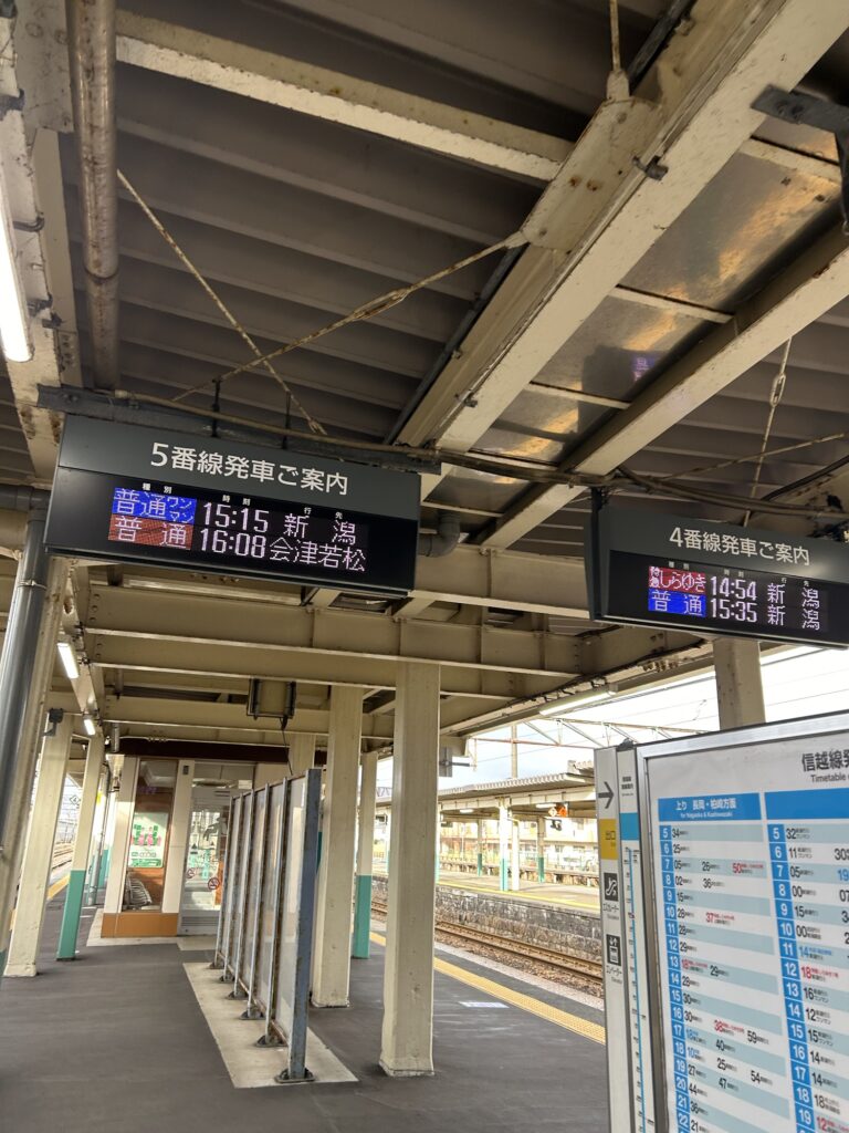 流石に暇になったので、途中の新津駅までの電車はありましたので、そこ