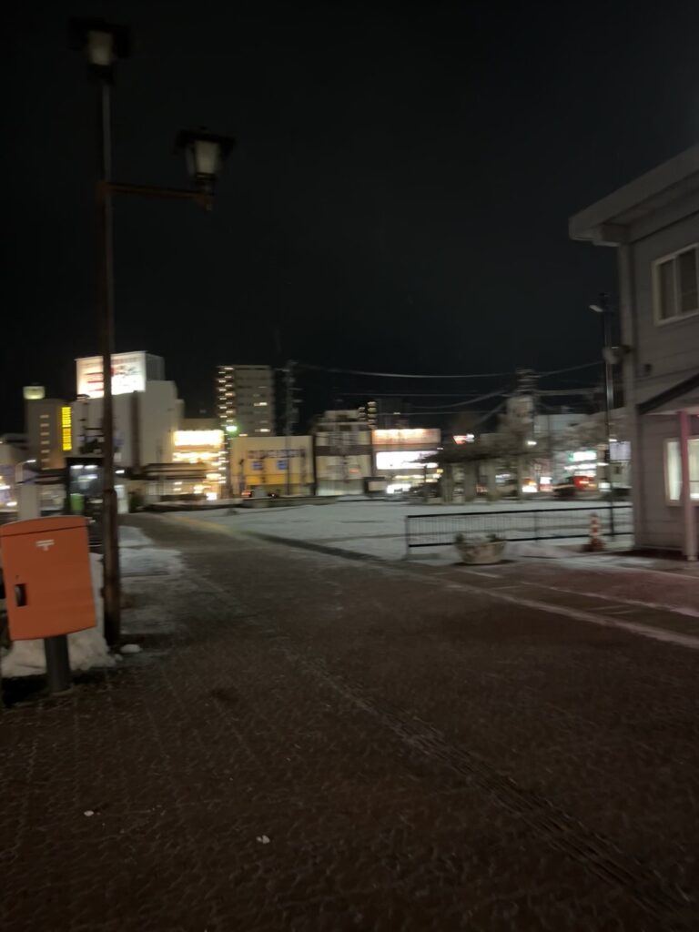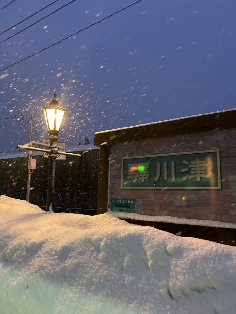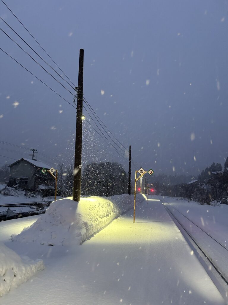 途中で停車した駅で、試しに降りてみると、このように、銀世界が広がって