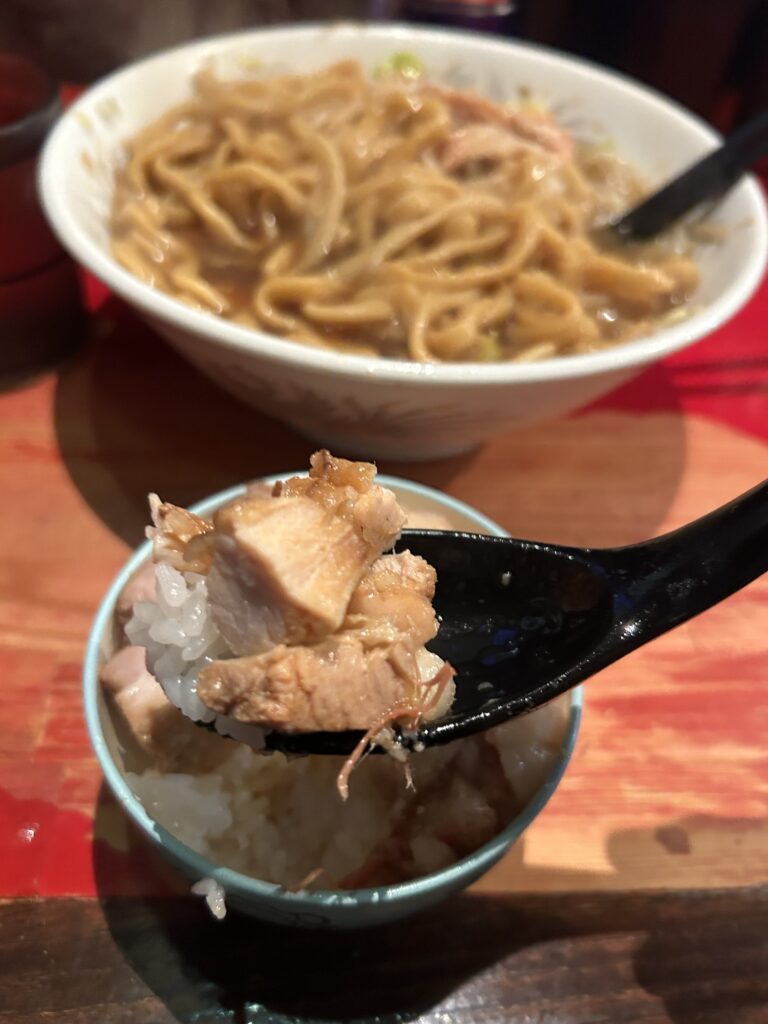 上にアブラと、細切れの豚が乗ったご飯ということで、非常にレアです