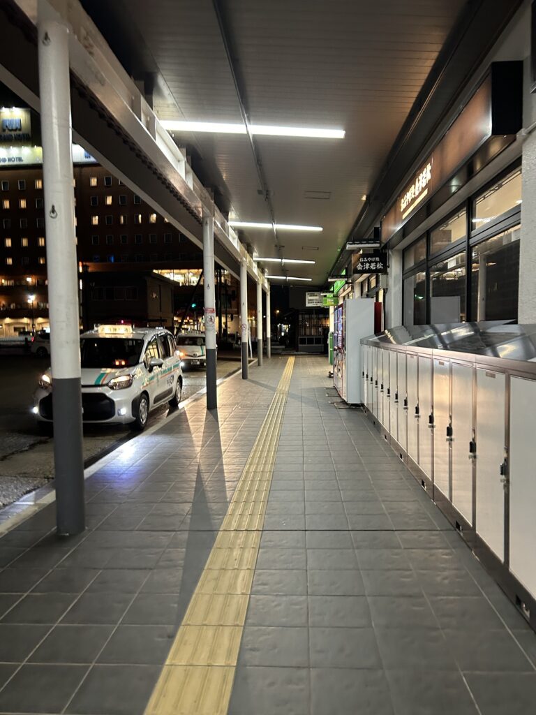 ①会津若松駅の改札を出る